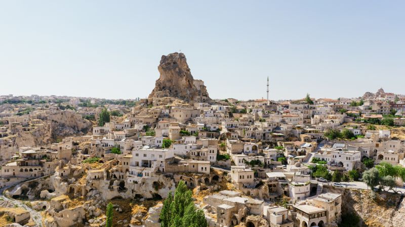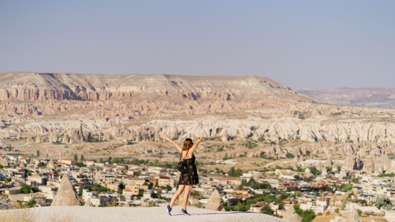 Üç saatlik bir yolculuğun ardından Kapadokya bölgesine giriş yapıyoruz. İlk durağımız, muhteşem manzarasıyla ünlü Ortahisar Kalesi olacak. Kaleye nazır bir kafede mola veriyor, manzaranın tadını çıkarıyor ve güzel fotoğraflar çekiyoruz.