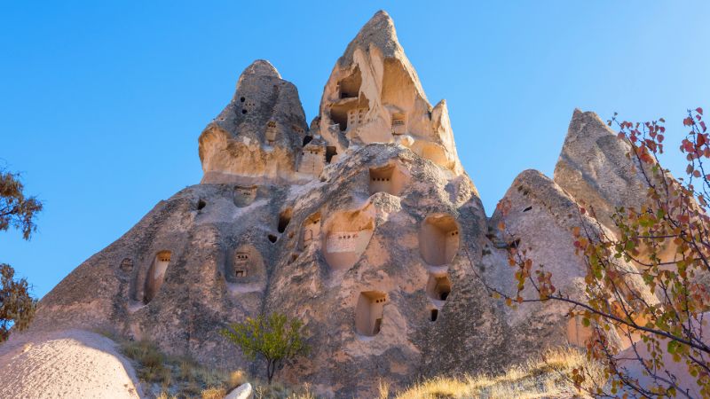 Son olarak, nazar boncuklu ağaçların süslediği Uçhisar Kalesi manzaralı Güvercinlik Vadisi’nde fotoğraf molası veriyoruz. Burada, bölgenin doğal güzelliklerini ve güvercin yuvalarını keşfetme fırsatı bulacaksınız.